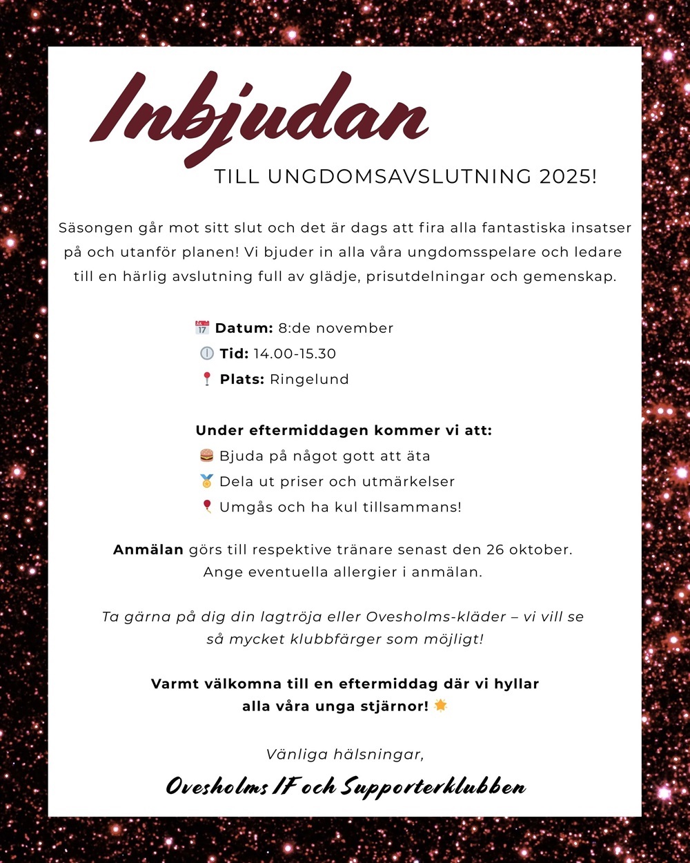 Som vi nämnde på träningen sist är det en gemensam avslutning för barnen i OIF.