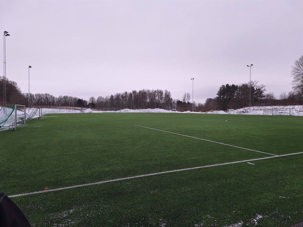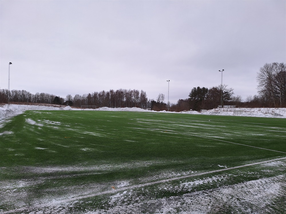 Efter dagens insats är det ok att använda planen igen. Det finns fortfarande lite snöfläckar kvar men de försvinner mer och mer. Vi kör planen med mattorna för att mjuka upp fläckarna som är kvar...